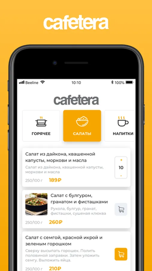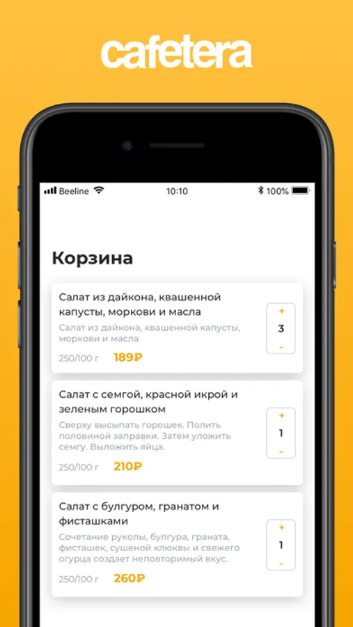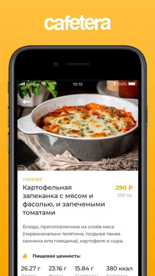 Приложение разработано только для клиентов Cafetera. С помощью него можно заказать доставку готовых блюд в бизнес-центр, где организована точка выдачи заказов Cafetera Delivery. Заказы принимаются в строго определенное время с 9:00 до 14:00. Приложение работает в городе Москва.