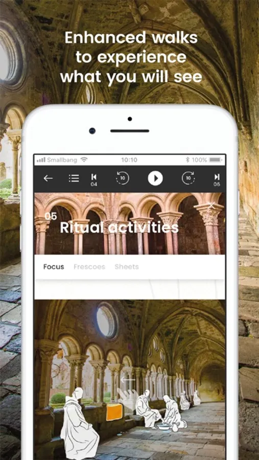 Each of the 20 sites has its own enhanced walk which takes you on a tour of the monument and accompanies you in your discovery. The voice which guides you on the visit is complemented by photos, images and diagrams which show you a detail or a building since disappeared or immerse you in moments from history, to transport you to the past and bring what you are seeing to life!