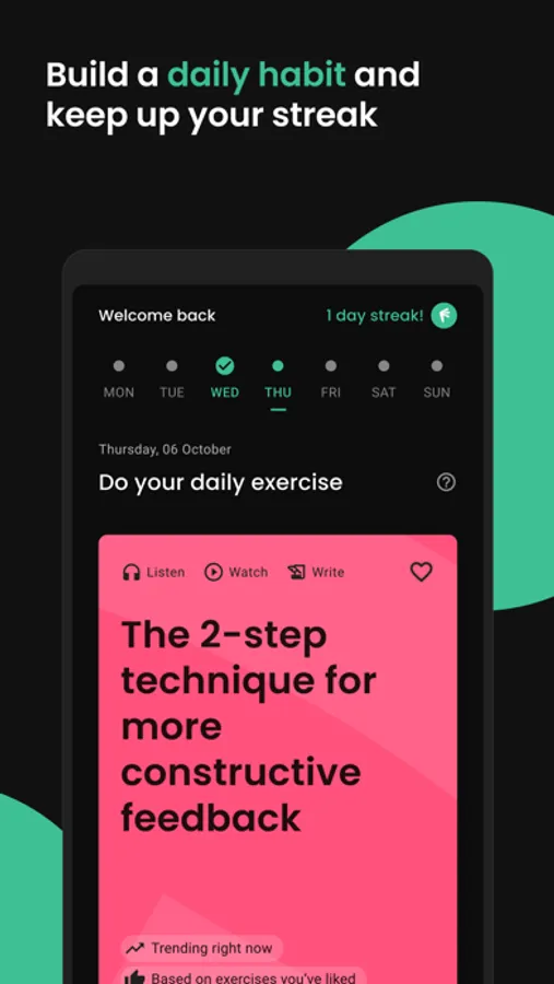 Using Fika mental fitness exercises regularly has been proven to boost your mental health by increasing positive emotions, life satisfaction and self-belief. Each exercise focuses on a proven mental fitness technique and uses guided audio, video and journaling to help you learn, reflect and take positive action. And, because each repeatable exercise takes just 5 minutes, you can quickly discover which techniques work for you.