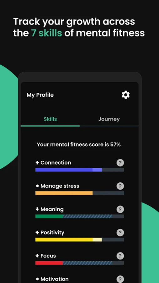Fika exercises are designed to train the seven skills of mental fitness which are stress management, confidence, focus, motivation, connection, positivity and meaning. Your mental fitness profile helps to identify development areas and track your progress.