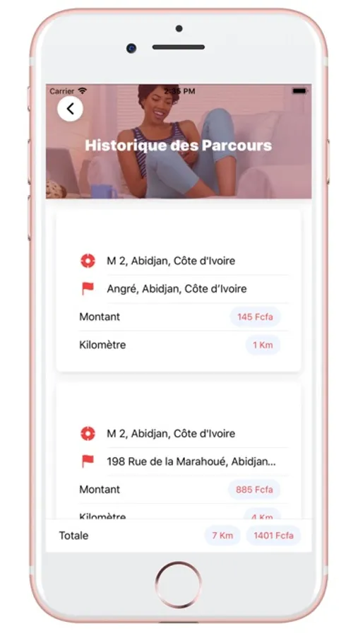 Coût de la course au moment de la réservation est calculé au Kilomètre.