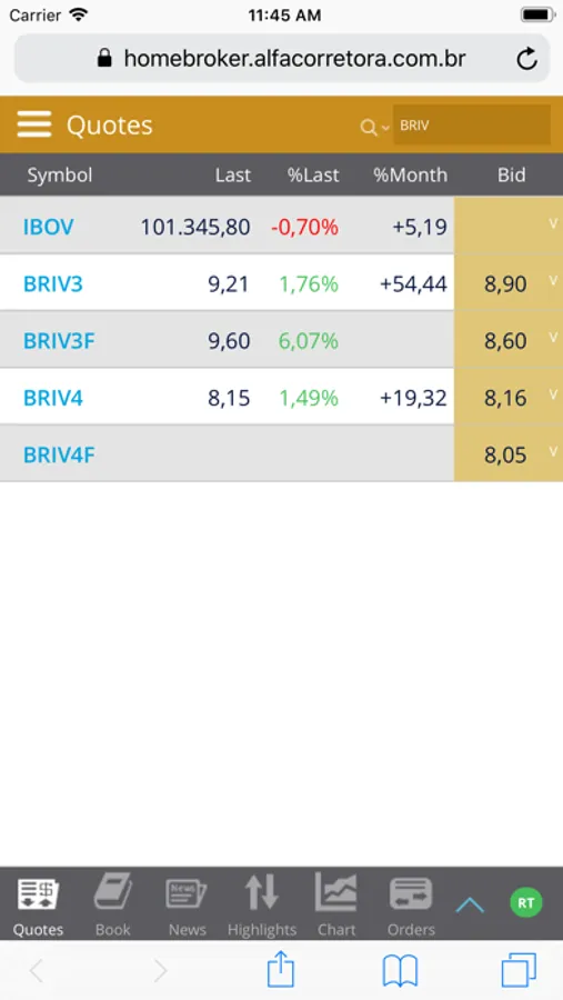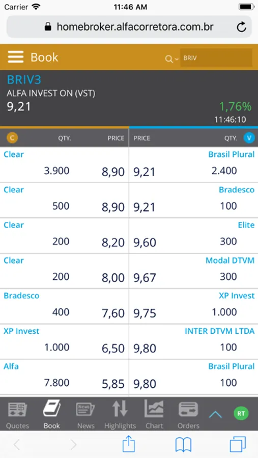 Com o aplicativo da Alfa Corretora você tem disponível um Home Broker completo, no seu celular. Nossa plataforma permite que o investidor invista de maneira segura e informada, com diversas funcionalidades de acompanhamento do mercado, como Book de Ofertas, Maiores Altas e Baixas, Ranking de Negócios e Volume e um Painel de Cotações totalmente customizável. O gráfico permite que você visualize o desempenho de um ativo ao longo do tempo, sendo configurável de acordo com sua necessidade, para investidores iniciantes e avançados.