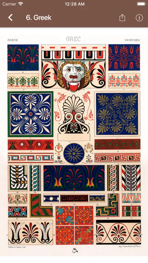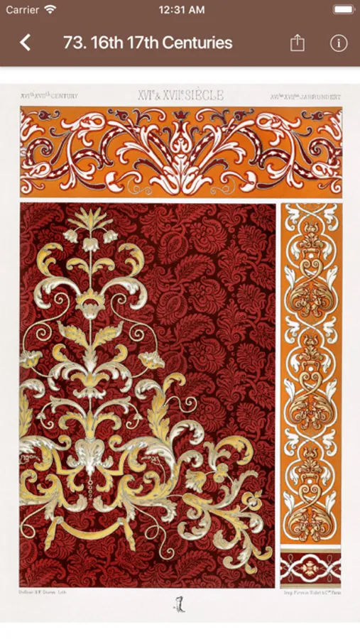 These 100 plates include more than 2000 specimens of design from cultures all over the world, through Antiquity, Middle Ages, Renaissance, 16th, 17th and 18th century, and from various mediums such as painting, textile, metalwork, woodwork, architecture, jewellery, ceramic, mosaic...