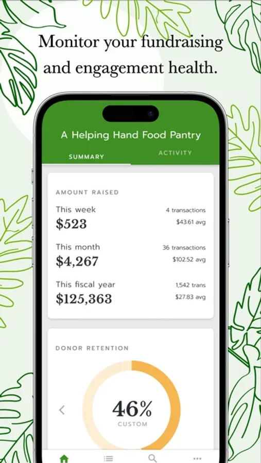 Organizational Insights -- Access your dashboard to see high level metrics including campaign progress and your current donor retention rate.