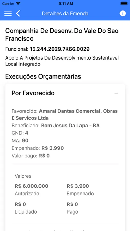 Aplicativo para smartphones e tablets, acessível a qualquer cidadão, que permite obter informações sobre a execução de emendas parlamentares e ações orçamentárias. O objetivo é facilitar o acompanhamento do orçamento federal, permitindo salvar emendas individuais e emendas de bancadas como “favoritos”. Além disso, o aplicativo possibilita ativar o recebimento de notificações quando houver atualização ou execução de emendas específicas. Seu conteúdo está disposto em um menu com os seguintes temas e opções: