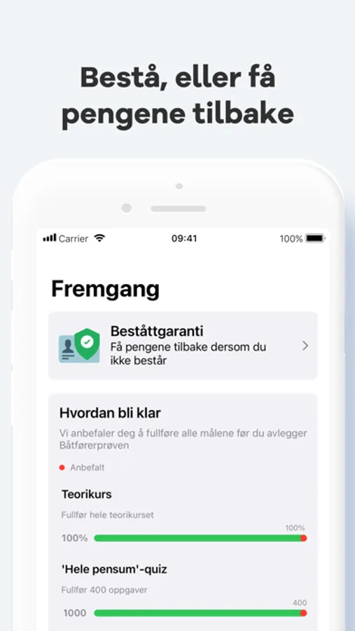 Med Båtførerappen kan du føle deg trygg på å bestå - vi hører nesten aldri om personer som stryker. Derfor tilbyr vi beståttgaranti - bestå prøven, eller få pengene tilbake.