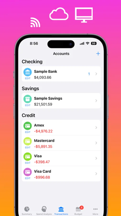 * Your own finance chart of accounts based on the upcoming scheduled transactions