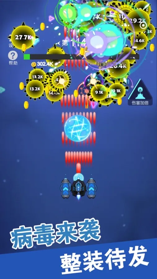 合成+射击新玩法的游戏来了!!也是一款会让你玩起来嗨到上瘾的游戏,它可以让你合成出酷炫的高级战机,消灭各式各样的病毒,守护你爱的人保护他/她不被病毒侵袭,和我一起愉快的打病毒吧!