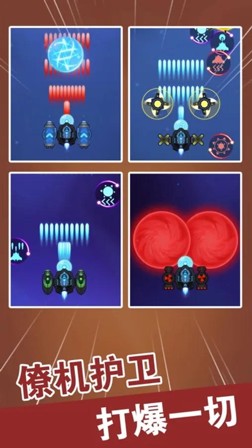 · 多样的关卡难度设计,难度循序渐进,升级战机的属性,炎炎夏天让你嗨翻天。