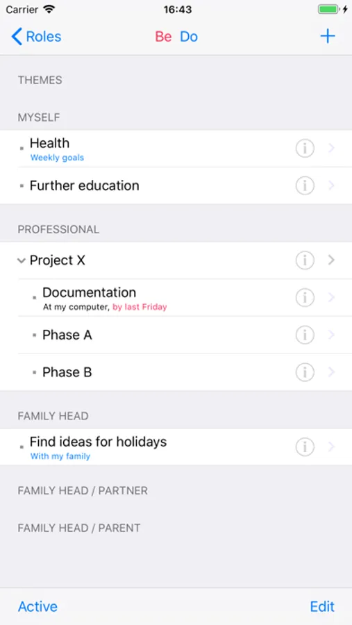 Be-Do is a multidimensional to do list, a planner, an organiser, an outliner, a note book, a tool for your self management, work life balance and habit forming.