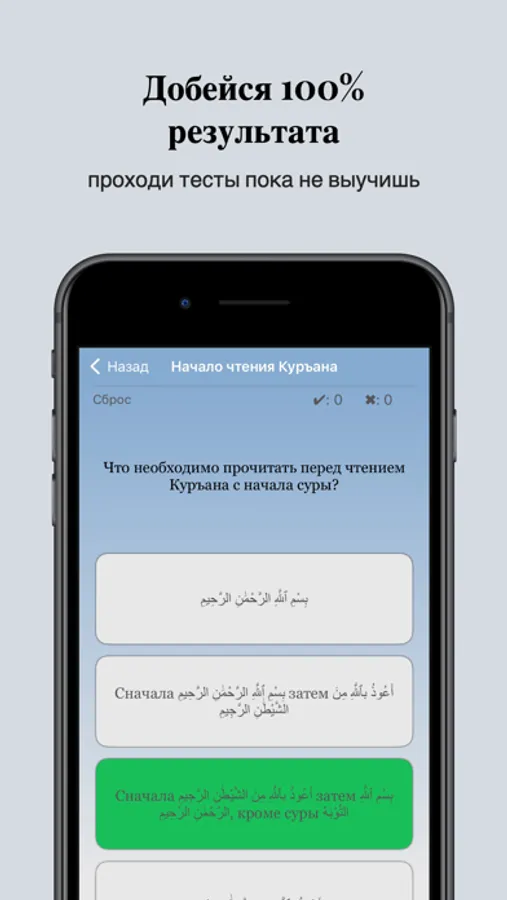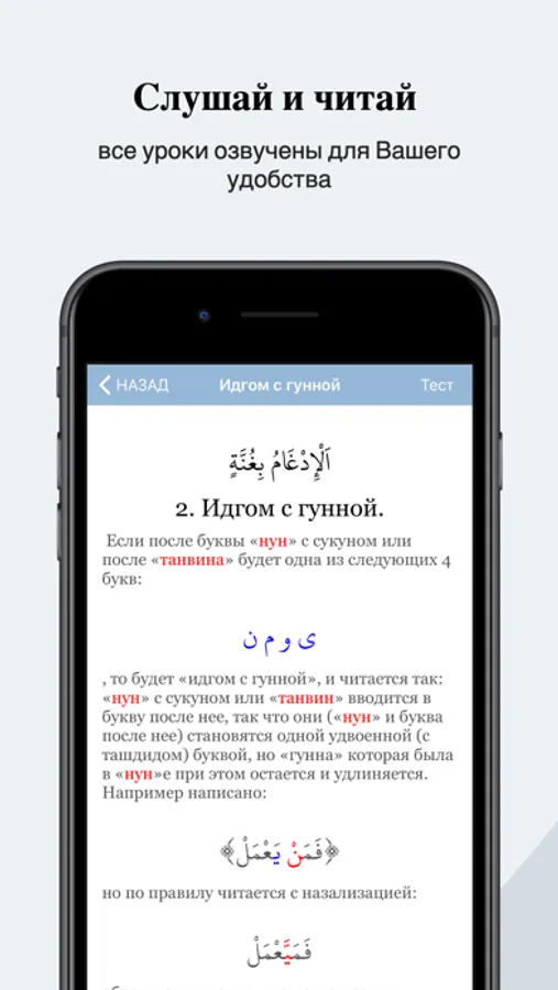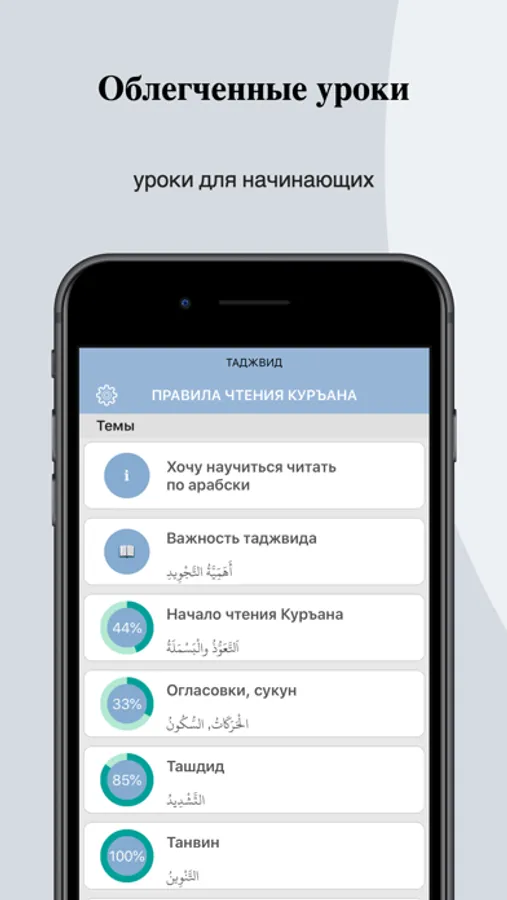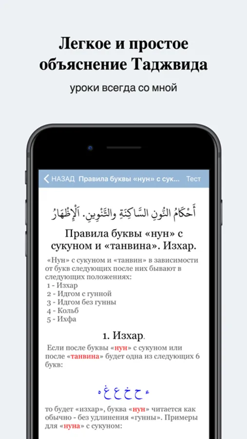 Начните обучение с первого урока, внимательно прочитайте весь урок, затем включив аудиозапись урока внимательно прослушайте урок, обращая внимание на правильное произношение примеров. Если что- то осталось непонятым послушайте урок еще раз. Если все понятно, тогда для закрепления пройдите тест. Вопросы тестов построены таким образом, чтобы еще лучше раскрыть тему урока. Старайтесь каждый тест проходить без ошибок, если были допущены ошибки пройдите тест еще раз добиваясь 100% результата, так Вы лучше закрепите урок. Полностью усвоив и закрепив весь материал, можно переходить к следующему уроку. Занимаясь по этой программе Вы сможете изучить основы таджвида.