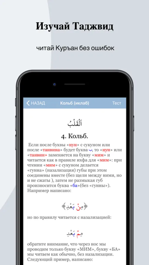Данное приложение предназначено для помощи начинающим в изучении таджвида - правил чтения Куръана.
