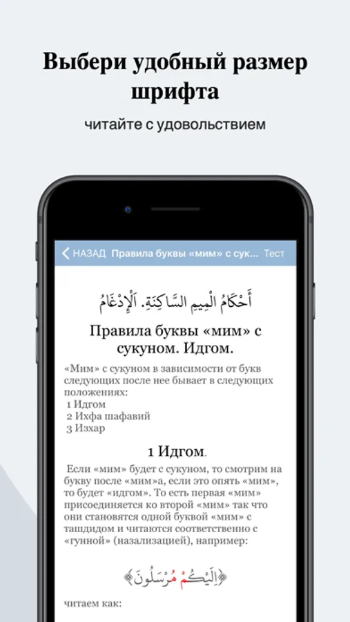Если Вы не можете читать по арабски, рекомендуем Вам наше приложение - "Арабский алфавит для начинающих" с помощью которого Вы сможете легко научиться читать по арабски.