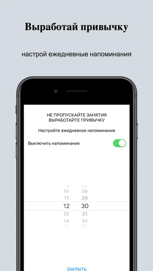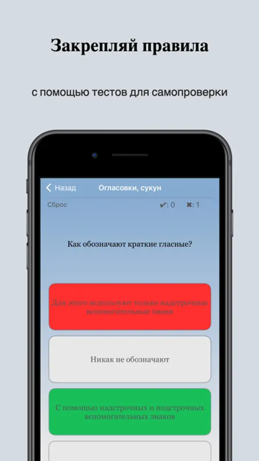 На начальной странице приложения находится список с темами уроков, в каждой строчке перед названием урока в кружочке указаны результаты теста в процентах. Сверху слева экрана находится кнопка - шестеренка для входа в настройки. Курс обучения разбит на 37 уроков, в каждом уроке изучается одна тема, вначале урока объясняется правило, затем это правило подробно разбирается на примерах. Все уроки озвучены. В каждом уроке есть тест для проверки пройденного материала. В приложении есть возможность включить ежедневное напоминание в удобное для Вас время.