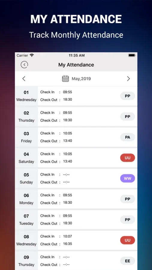 6. Easy calculation of Paid Days, Out duty & Travel Expenses