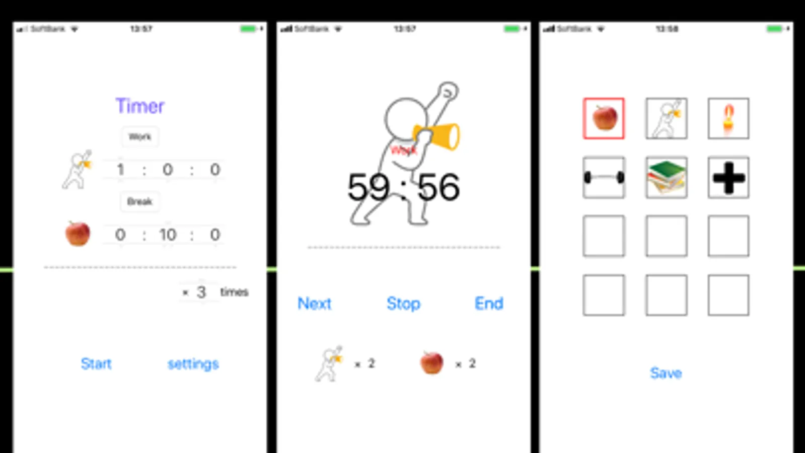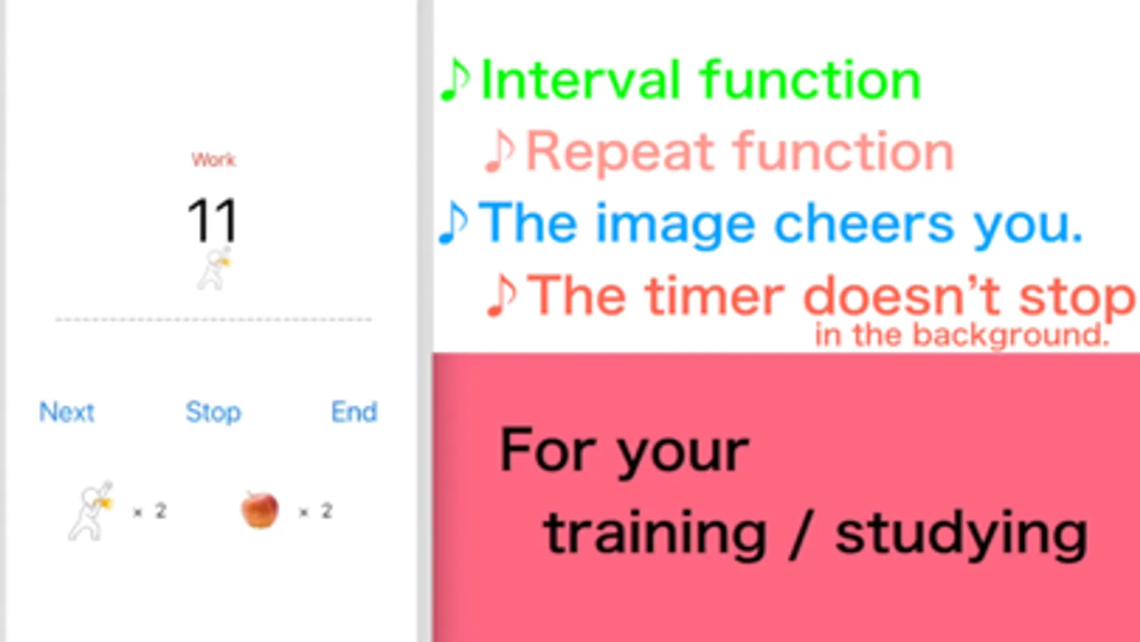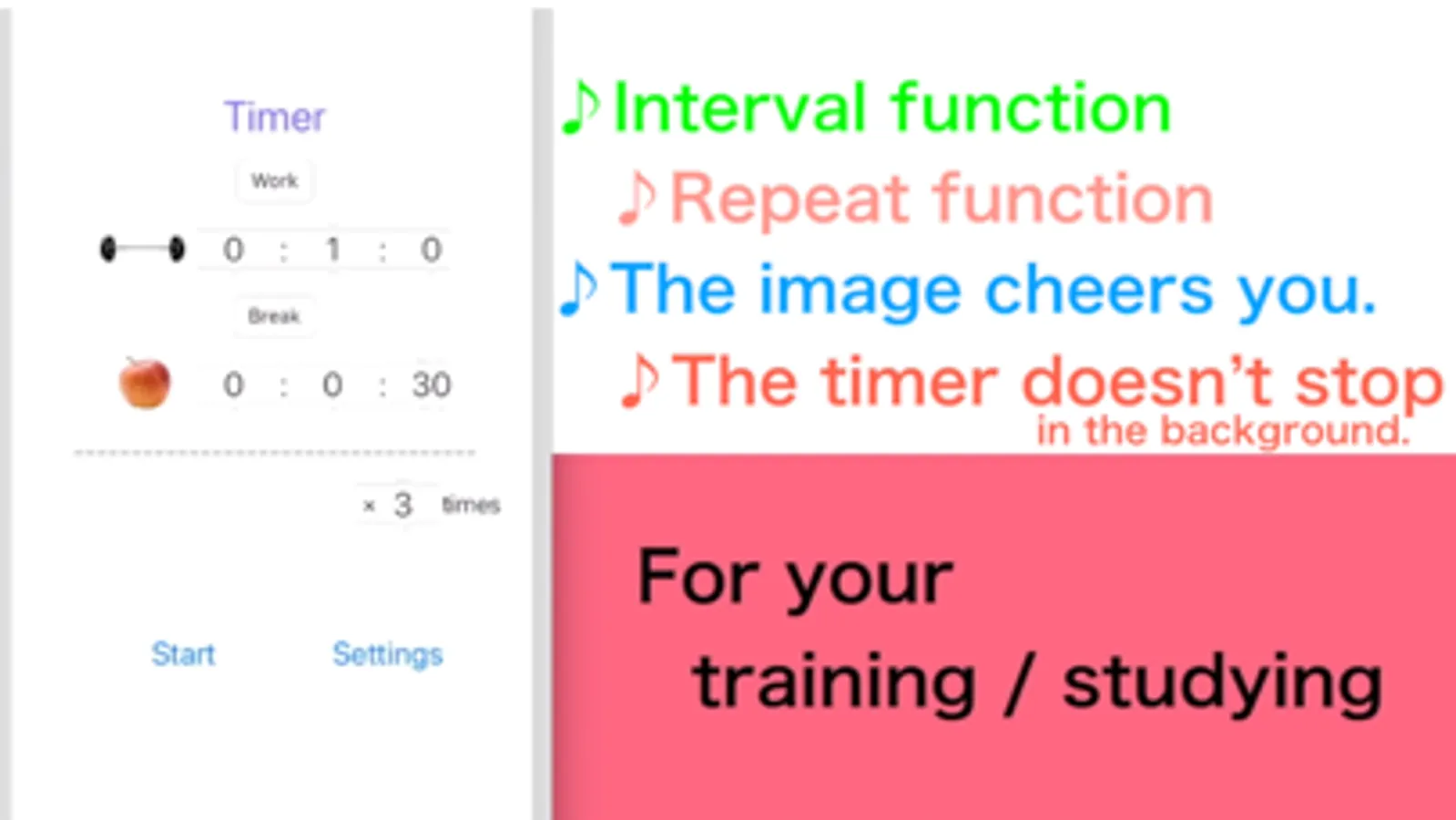 This is a timer application that can be repeated settings and interval settings. You can use this timer when you want to concentrate successively like muscle trying and studying etc. Also, the image might motivate you to do anything.