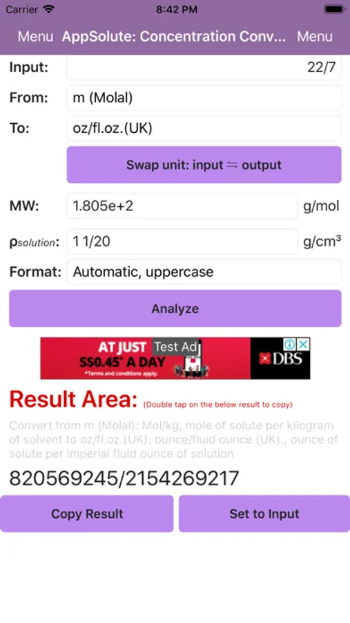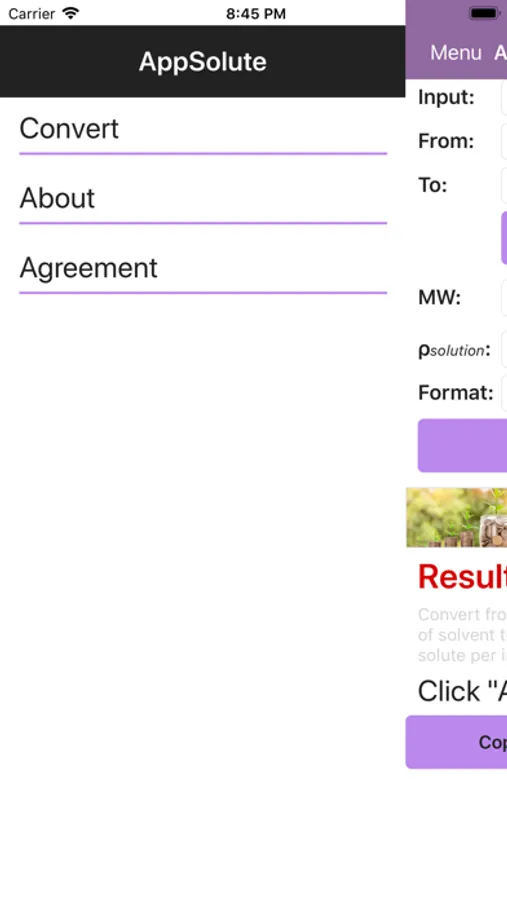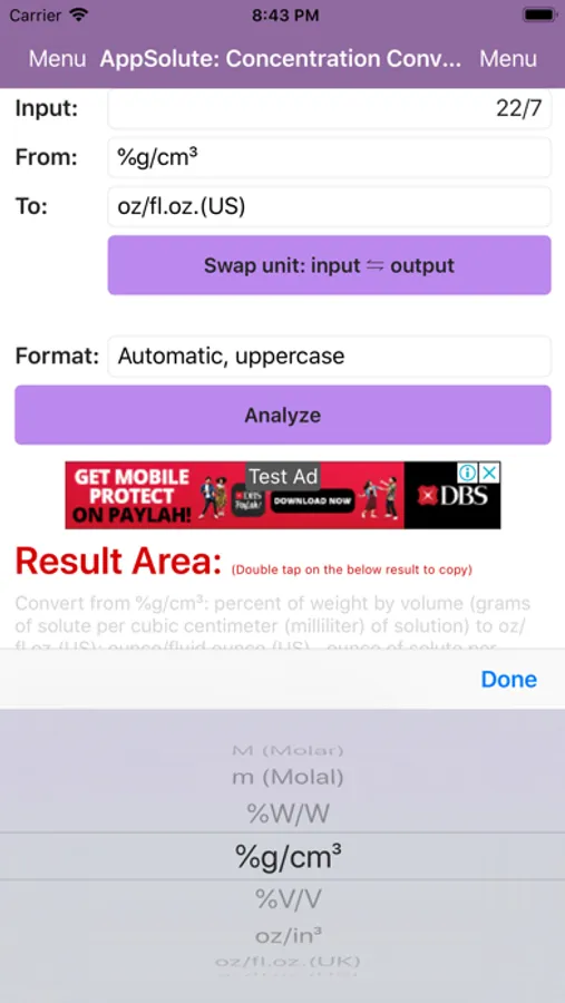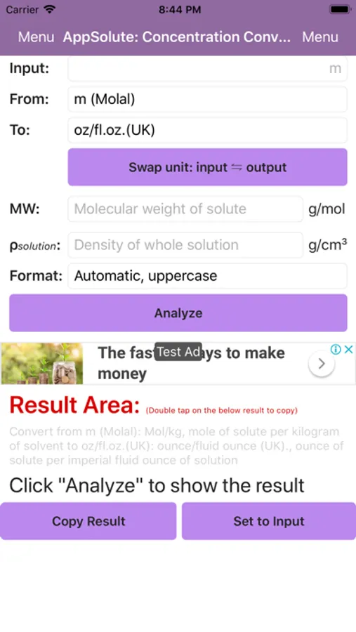 AppSolute (Lite) is the concentration unit converter. It can convert 5 units,