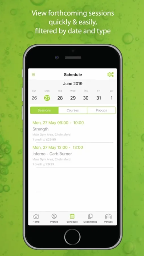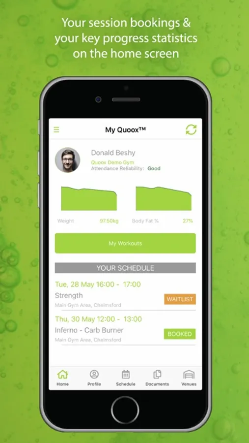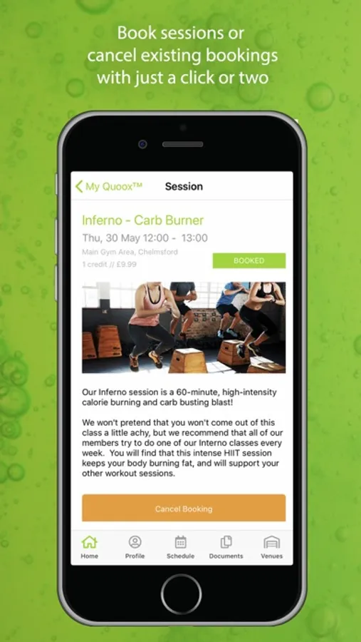 The app provides members with the ability to review their centre's session schedule; make/cancel bookings; view their training progress; undertake on-demand workouts; download useful documents; and much more.