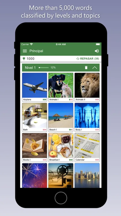 Free app to learn English by improving your VOCABULARY in an easy and fast way, with more than 5,000 words classified by levels and topics.