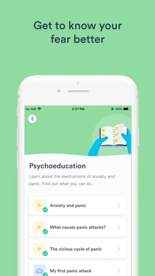 - Psychoeducation: animated videos and texts help you better understand your anxiety.