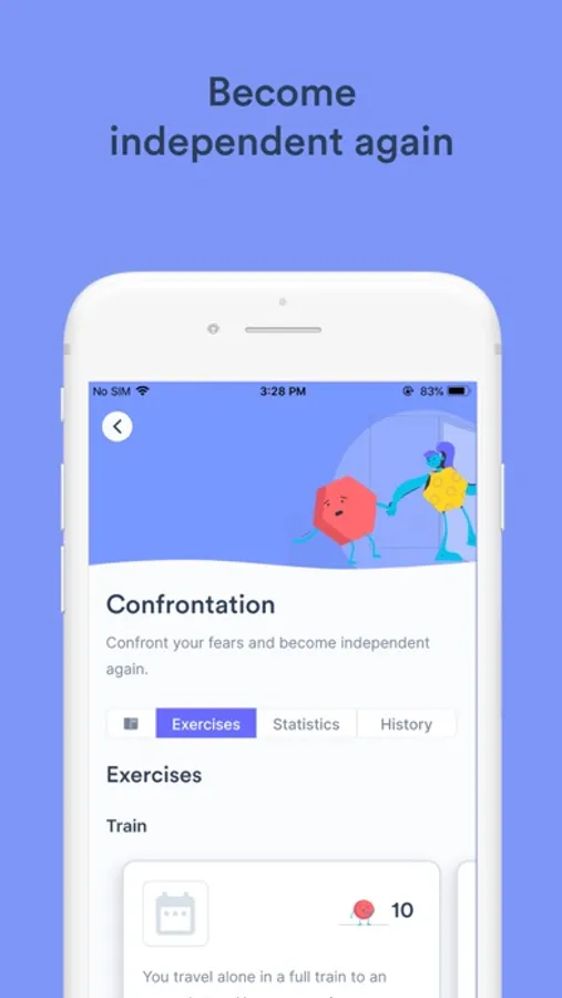 - Confrontation: Face your fears and reduce your anxiety in the long run. Mindable supports you with over 350 confrontation scenarios.