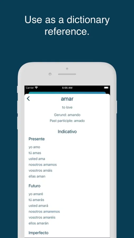 I found this to be the best way to learn and test verb conjugations so I built an app for it. Contains over 500 of the most commonly used verbs with all tense and mood combinations. The default quiz settings are a good starting point for new language learners as it tests the 20 most common verbs on present indicative. The app is completely free with the option to donate. With donations I would like to add quiz history, integrate game center to incite learning through competition and possibly a noun memorization section. Thanks for your support. Feedback and suggestions welcome!