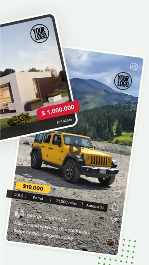 Our App is here to help you: choose your industry (real-estate, automotive, agriculture), select one of the multiple available industry templates, start shooting and share your creation in one Click!