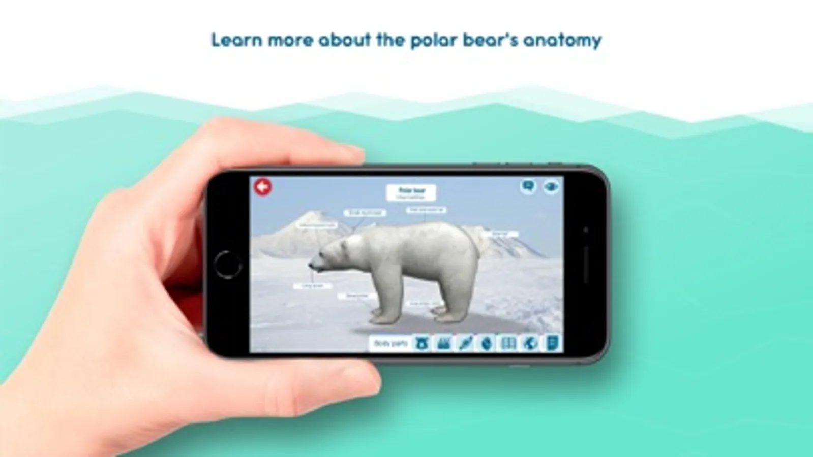 Polar bear 3D model. Learn about the polar bear’s body, skeleton, muscles and organs and prove your knowledge by taking a test.