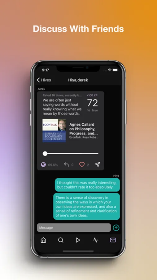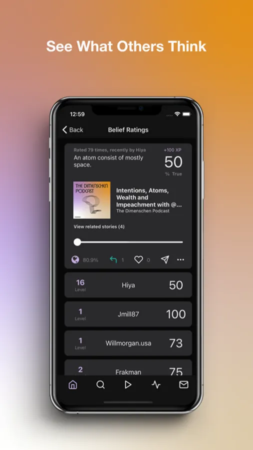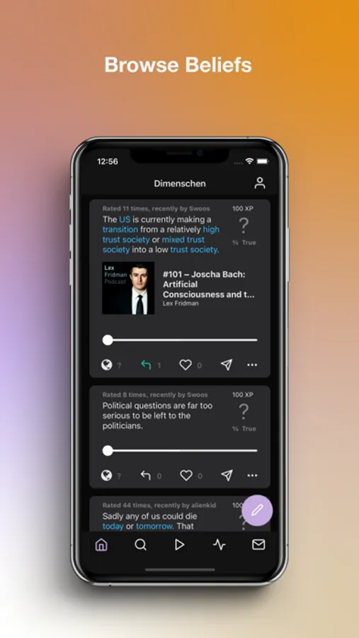 Dimenschen is a new type of social platform dedicated to improving the quality of online discourse and eradicating misunderstandings. Through Dimenschen, submit the content you consume—articles, podcasts, books, videos, and movies—and rate or update your ratings on ideas related to the content you complete. Follow your friends and other users to see how their reality compares to yours.