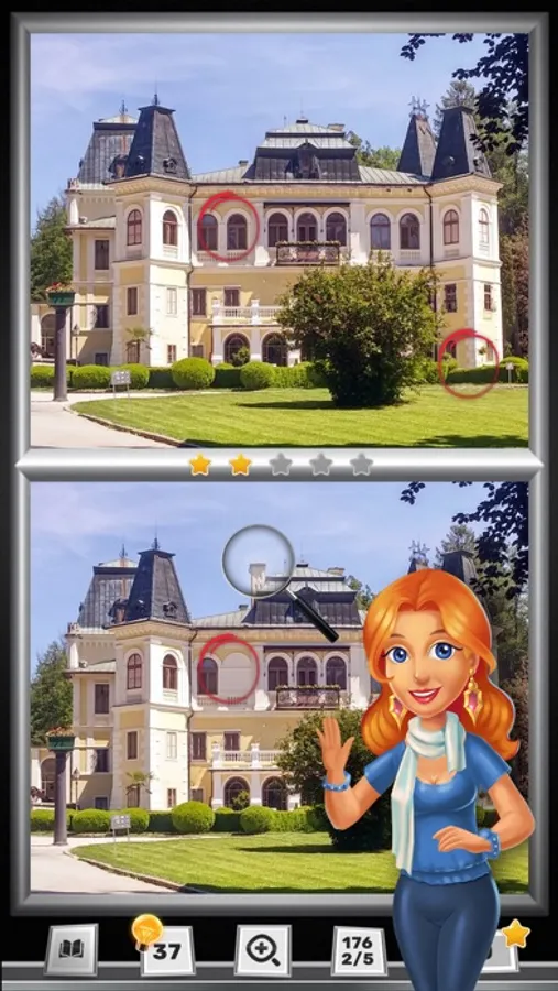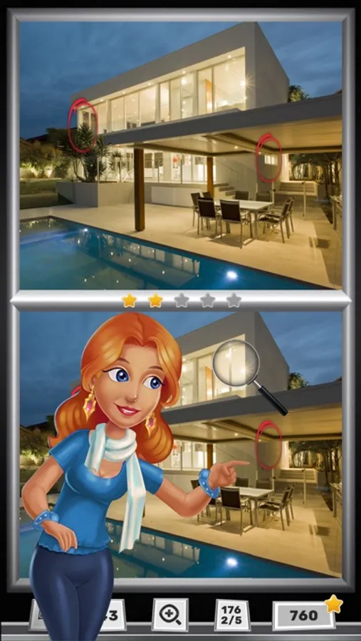 Search for your dream home with “find differences” detective Shirley Combs on her fabulous photo hunt tour! Compare pictures of two beautiful, very similar mansions and seek out the 5 differences hidden between them. How fast can you scan the photo and spot it? Try out Find the Difference games free to put your photo hunt skills to the test! Ready to get started? Detective Combs is waiting to start the photo hunt!