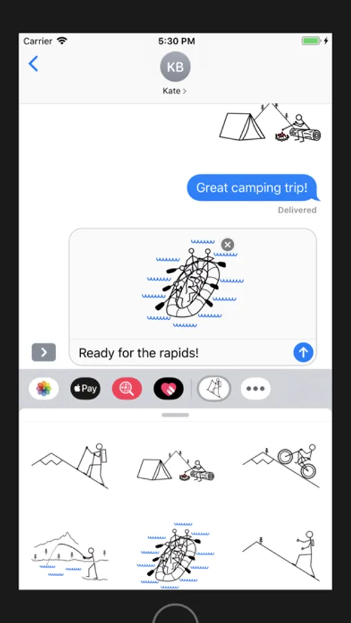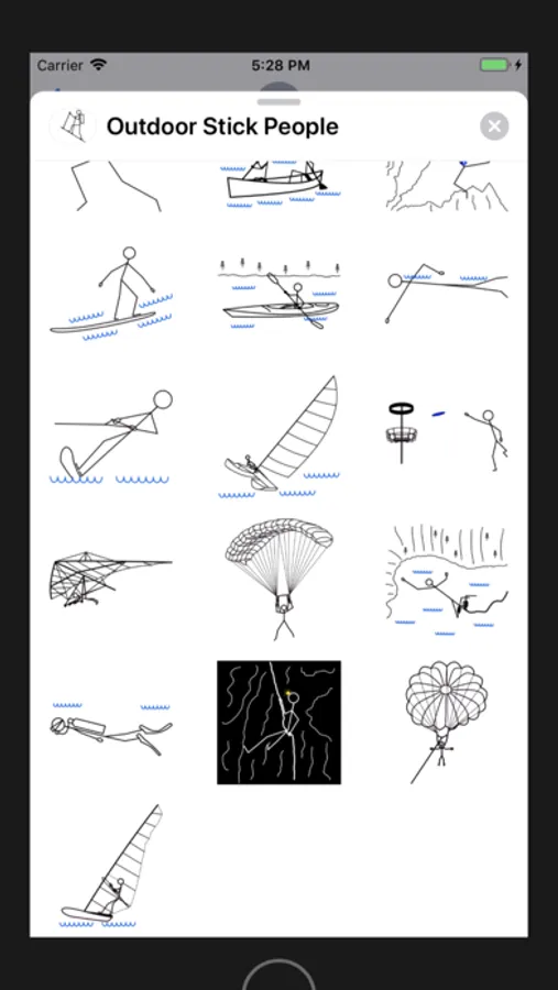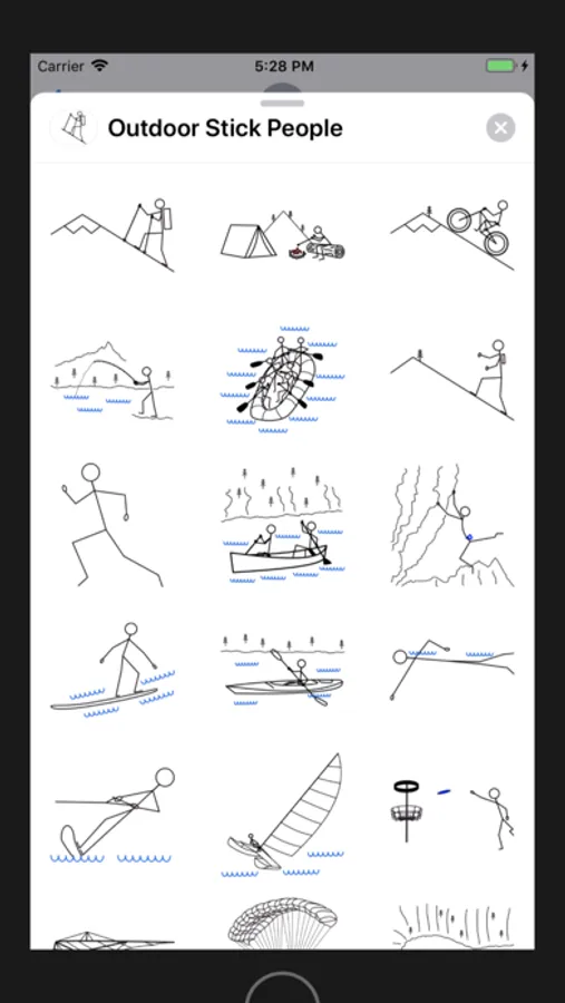 22 fun outdoor adventure iOS iMessage stickers featuring stick figures enjoying awesome activities!