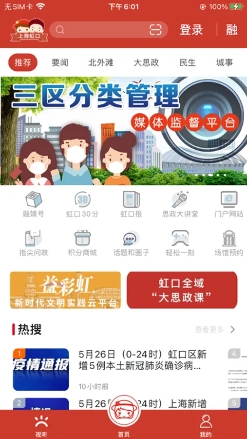 “上海虹口”是虹口区融媒体中心全新打造的融媒体客户端产品,深度融合电视、报纸、广播等资源,是新闻资讯的集散地。打开“上海虹口”融媒体客户端,不仅能看新闻、读报纸、看电视、听广播!一端在手,应有尽有。
