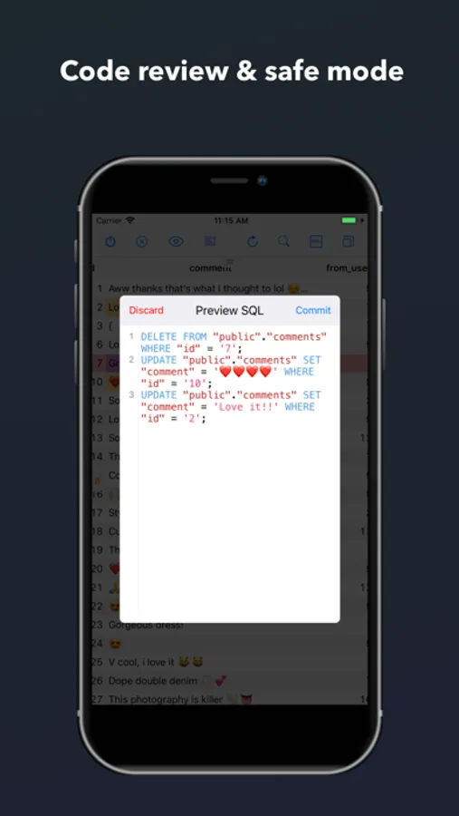 - Edit data rows, table structure, or query results directly with just a touch, review generated SQL before submitting.