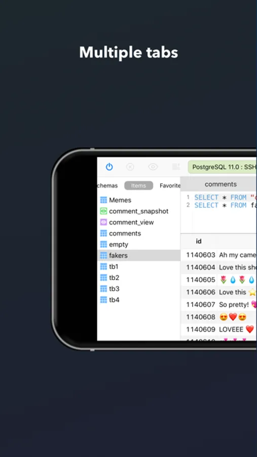 With a simple design and powerful features, TablePlus makes database management easier, faster & more efficient on your iOS devices.