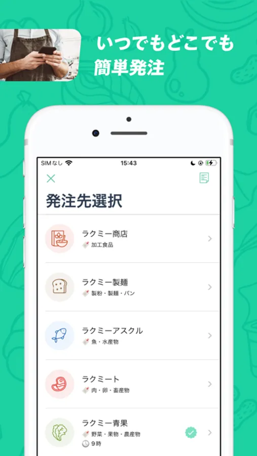 ラクミーは飲食店と卸業者の受発注業務を簡単にする業務用のスマホアプリです。