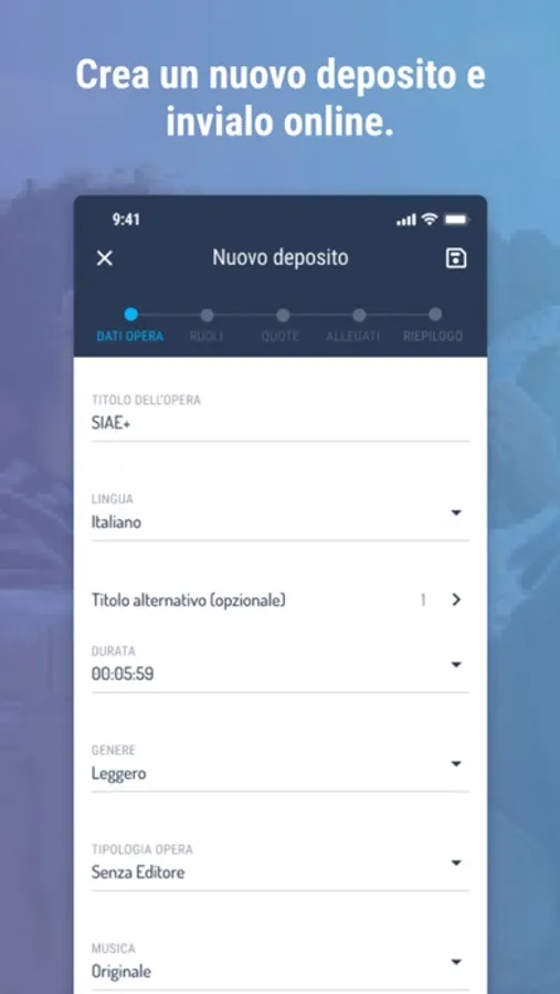• Deposita in pochi step i tuoi brani con la firma elettronica