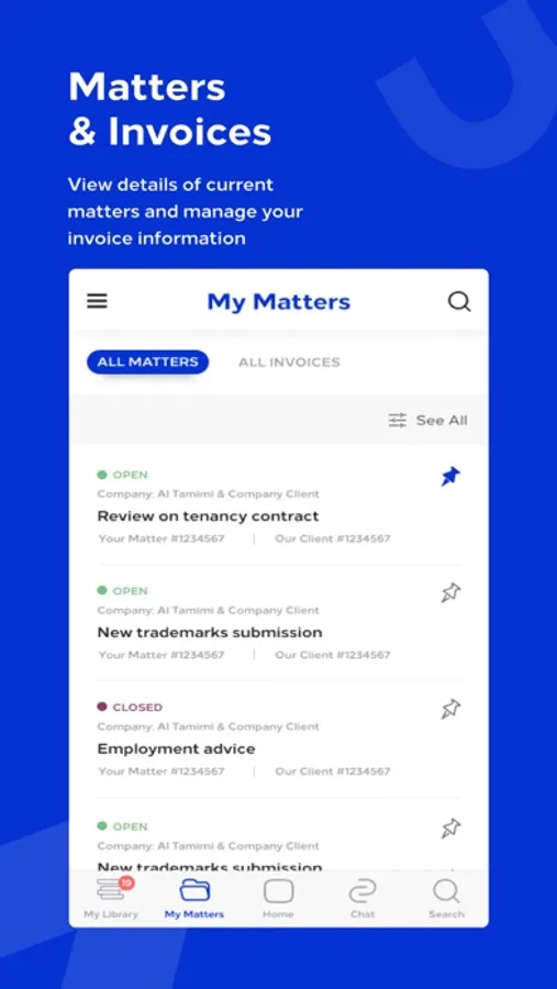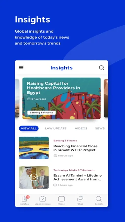 Clients can securely connect with their lawyer, view details of current Matters, manage invoices and RSVP to upcoming events. Employees can access the staff directory and connect with colleagues. And all users can access a vast database of articles, videos and other materials covering the legal landscape in the GCC, Egypt, Iraq and Jordan.
