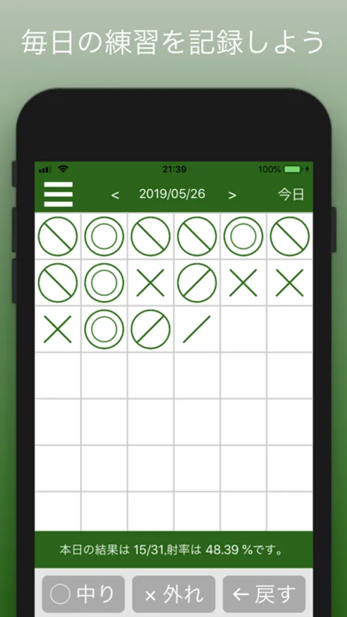 中り外れをタップするだけで簡単に記録されます。