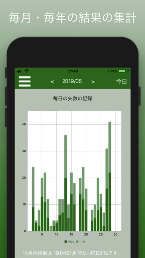 その日の矢数・射率は直ちに計算されます。