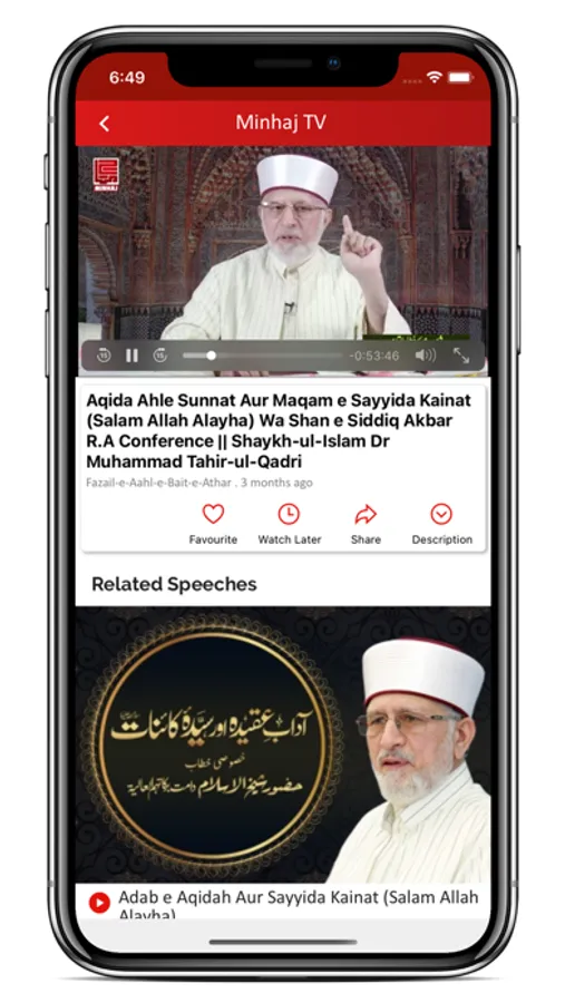 Minhaj TV mobile app launching ceremony was held on June 9, 2018 at the Itikaf City. Shaykh-ul-Islam Dr Muhammad Tahir-ul-Qadri launched the app by formally opening it on the mobile. Thousands of video speeches are available on this mobile app. Some important features of the app are as under: