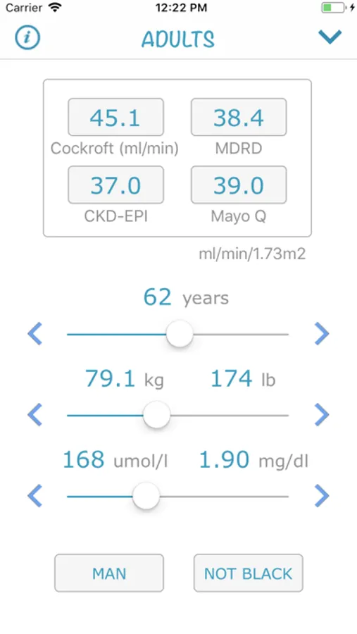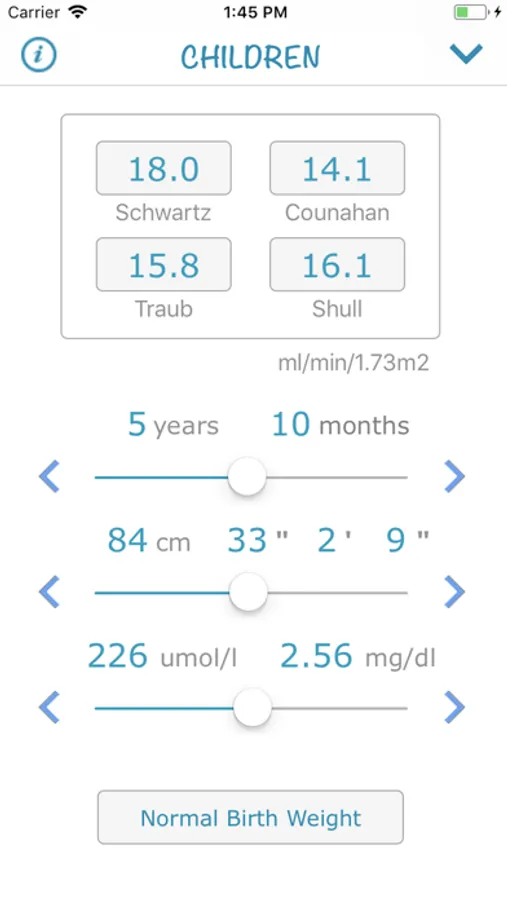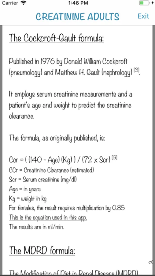 This application will help you compare the results of different equations used to approximate the creatinine clearance from serum creatinine values.