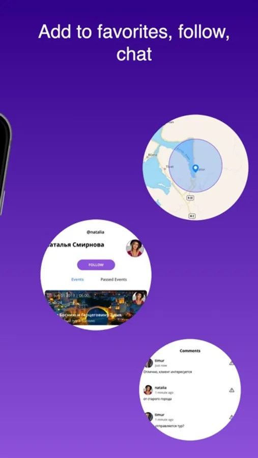 Add your favorite events to your favorites, show interest in participating, and chat with the organizer.