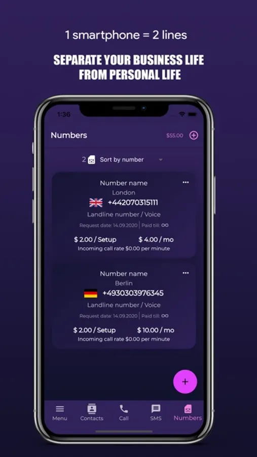 Keep your personal and business life separate with a dedicated business number as a 2nd line phone number on your smartphone.