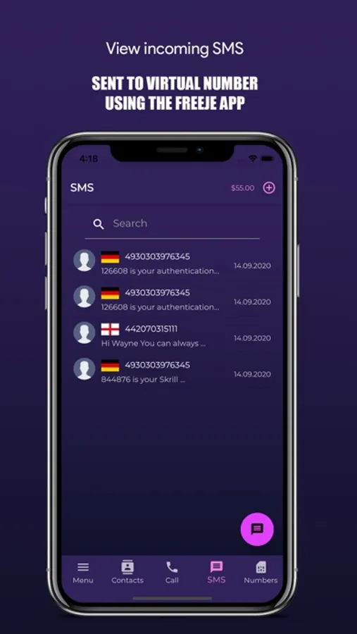 *Freeje does not provide any free or trial numbers for receiving SMS