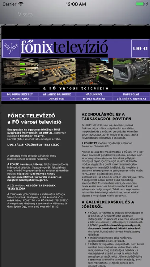 A Főnix TV applikáció a Streaming4U streaming szolgáltató által kibocsátott ingyenes alkalmazás. Applikációnk segítségével élőben nézheti a Főnix Televízió adását, valamint az elérhetőségeken keresztül felveheti a kapcsolatot a műsorok szerkesztőivel.