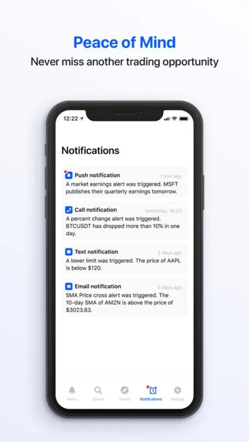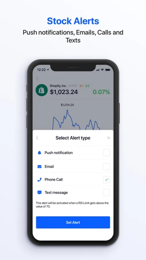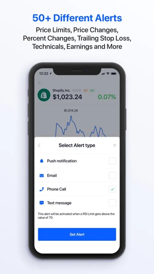 The ultimate stock market alerting app that will push, text, call, or email you when your stock or crypto alert triggers.