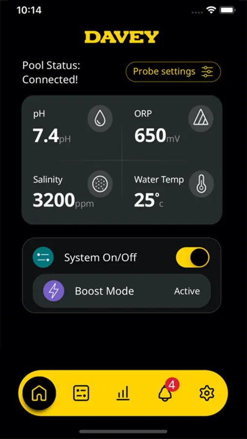 Davey Lifeguard is a complete chemistry control system for residential pools. When connected to this fully integrated app, users can remote monitor and control their pool. Real time notifications are sent to the app regarding the status of the connected Davey Lifeguard Chemistry controller as well as the condition of the pool water.