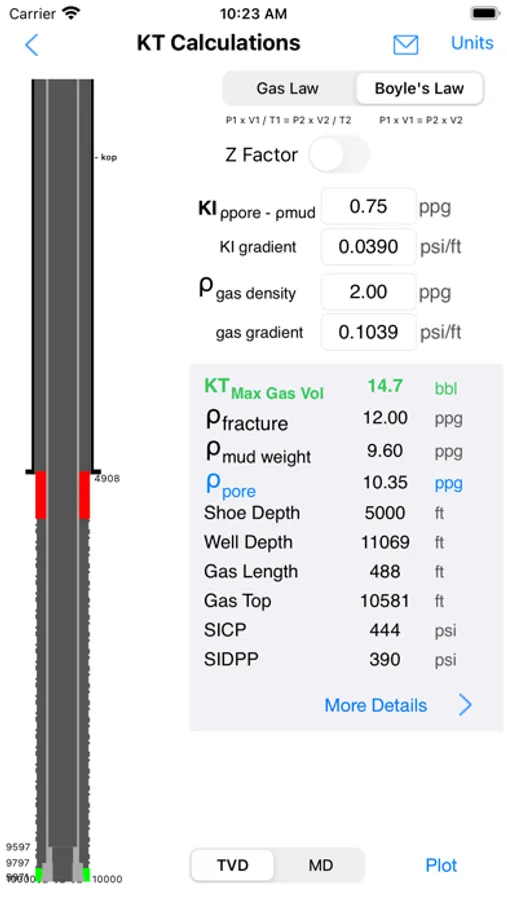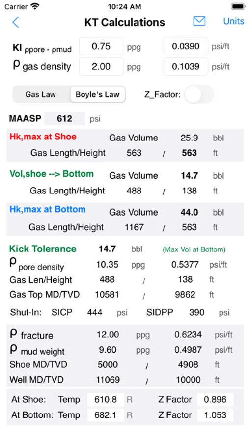 - Kick Tolerance as Maximum Kick Volume applying the Boyle's Law and also with options for Gas Law (temperature and gas compressibility factor effects).