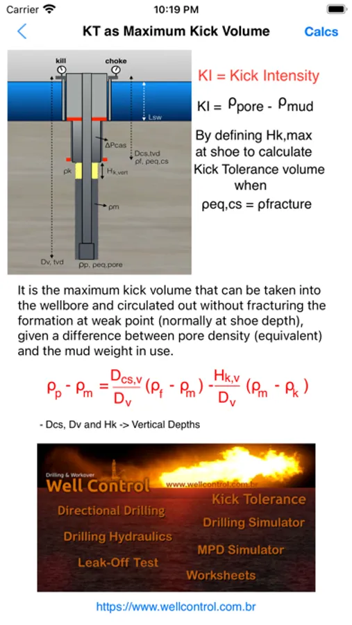 The Kick Tolerance provides to drilling engineers, chemists, students and other professionals in the petroleum industry a productivity helpful tool in the drilling operations (well control) and well planning step of oil wells.