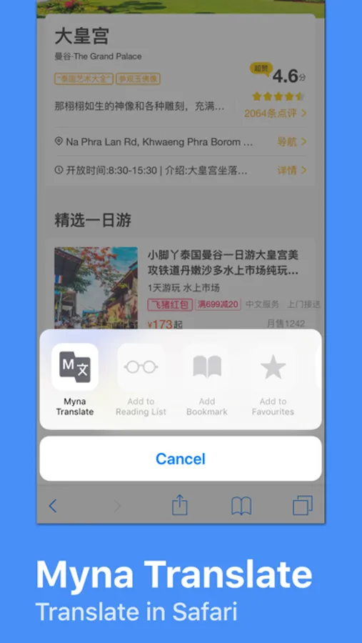 • Instant access to Myna Translate via Safari Share button.